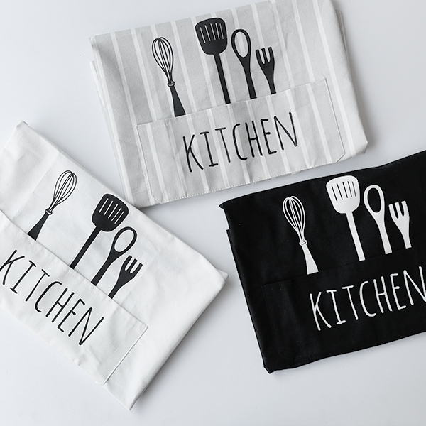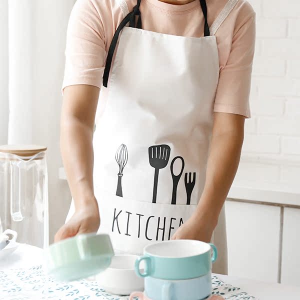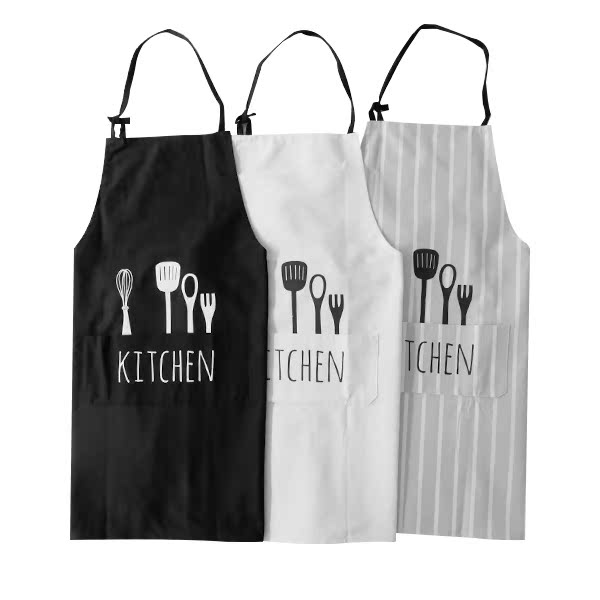 Wooden household Nordic style cotton creative solid color knife and fork pattern apron couple fashion kitchen companion