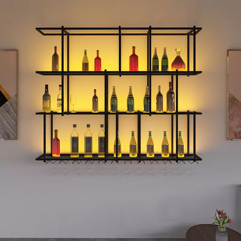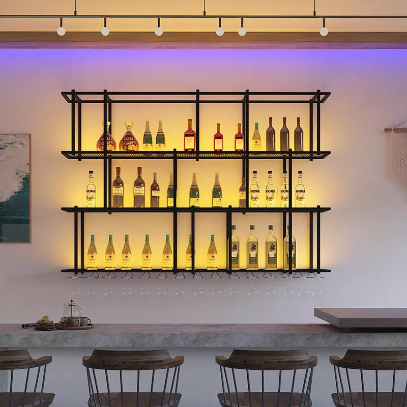 Wall-mounted wine rack storage rack Wrought iron wine cabinet Dining room bar bar upside down wine glass rack Hanging red wine decoration storage shelf