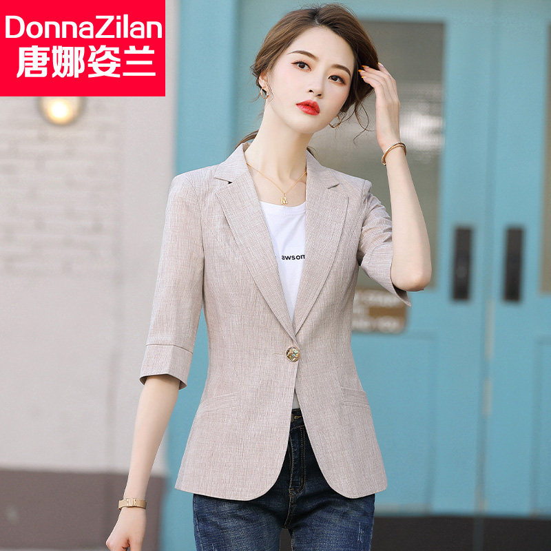Three-quarter sleeve small suit jacket women's spring and summer new Korean version of the slim short section small thin section suit top