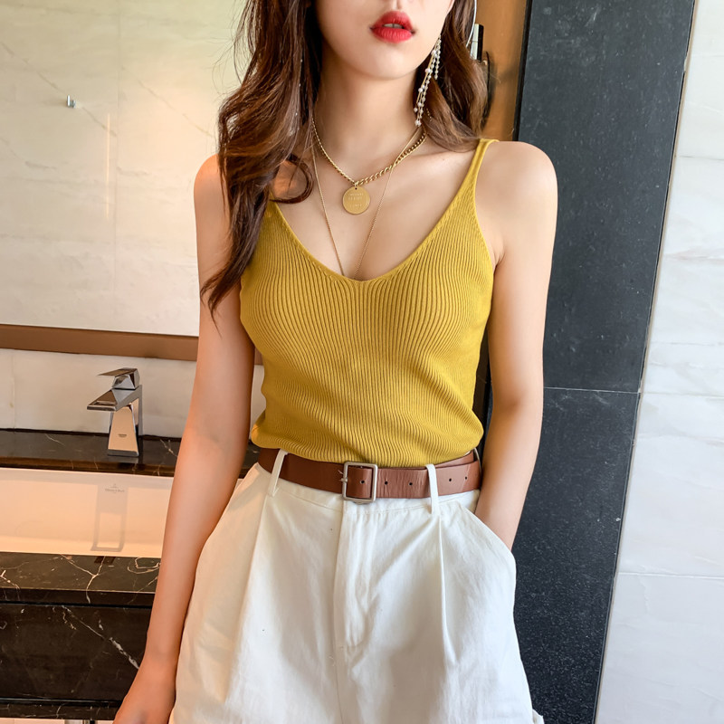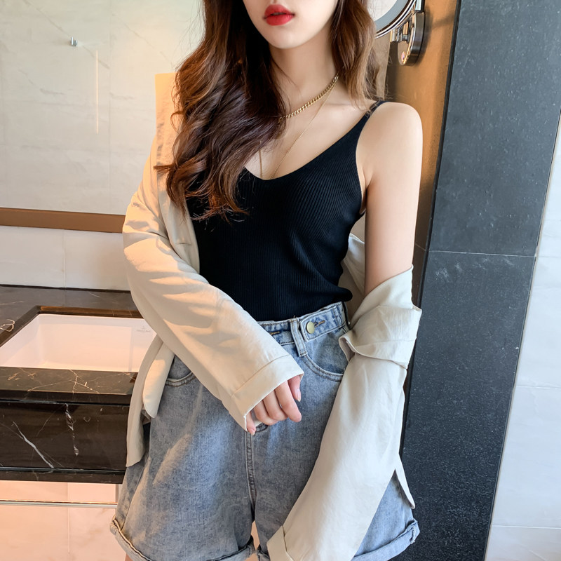 V-neck knitted camisole women's 2022 autumn new white sexy slim tops with bottoming shirts thin section