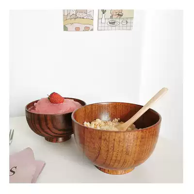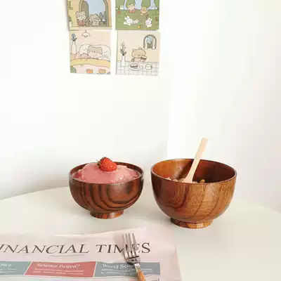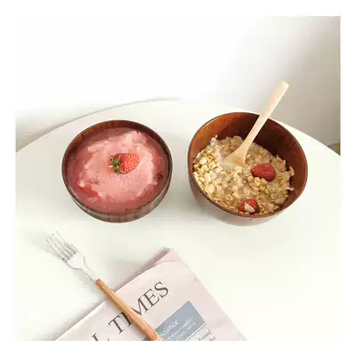Little fairy Korean ins cereal bowl Fruit salad breakfast wooden bowl Retro anti-scalding primary color natural wood paint bowl