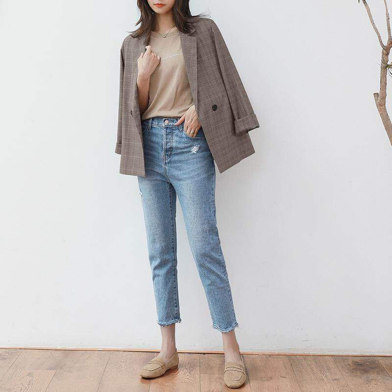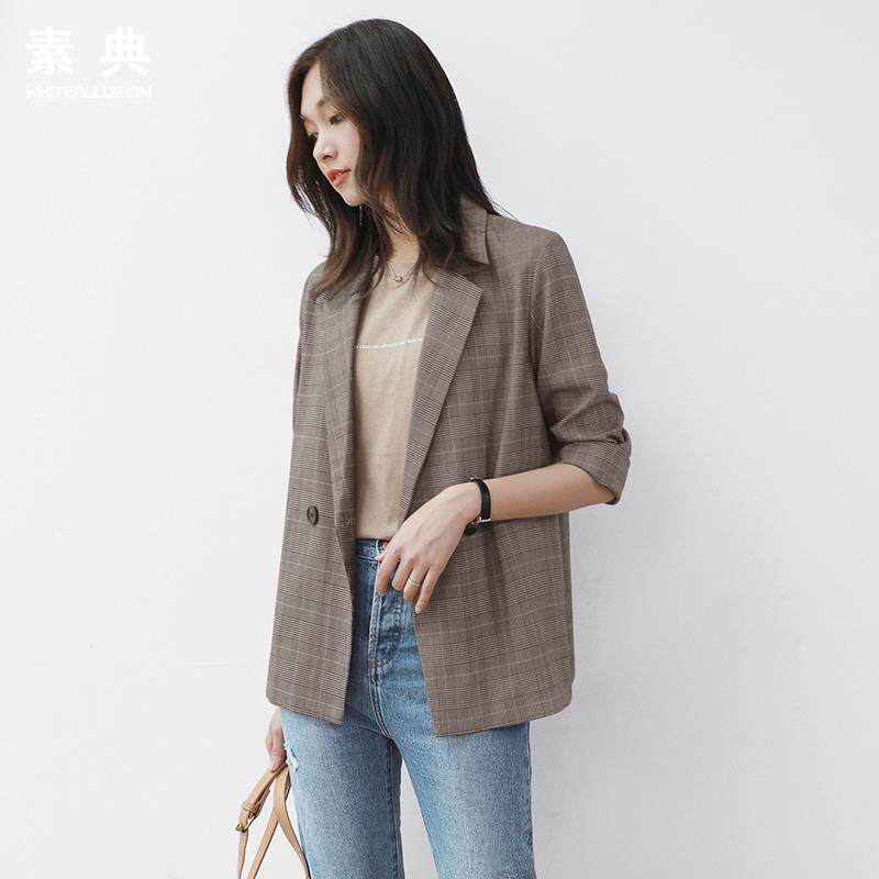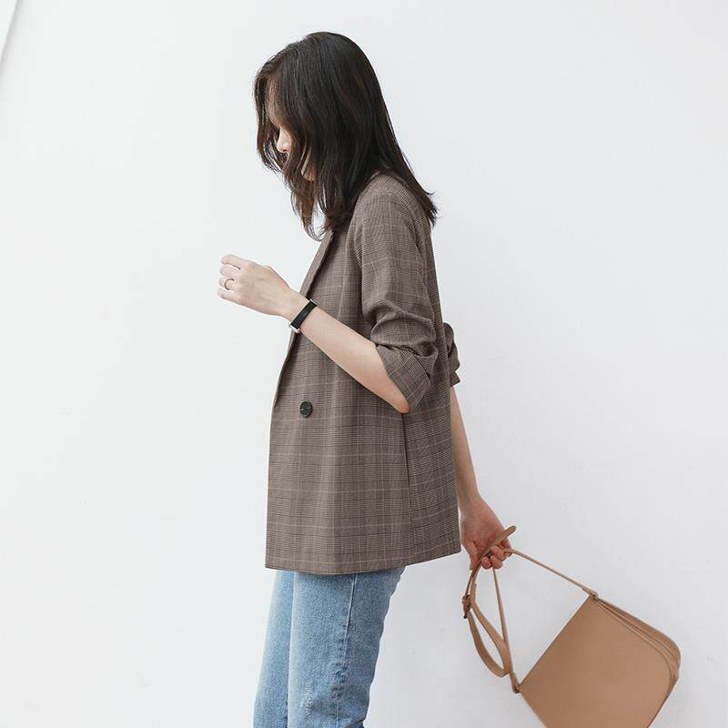 Plaid Small Suit Woman Han Edition 2019 Spring Dress New Slim Fit Chic Loose Jacket Casual Plaid Regusto