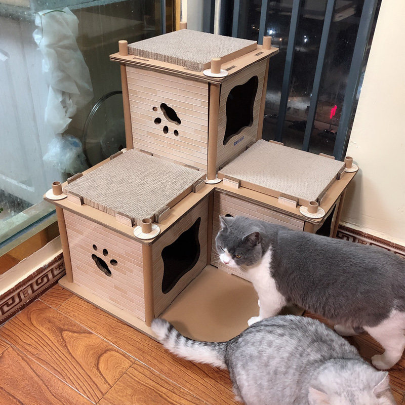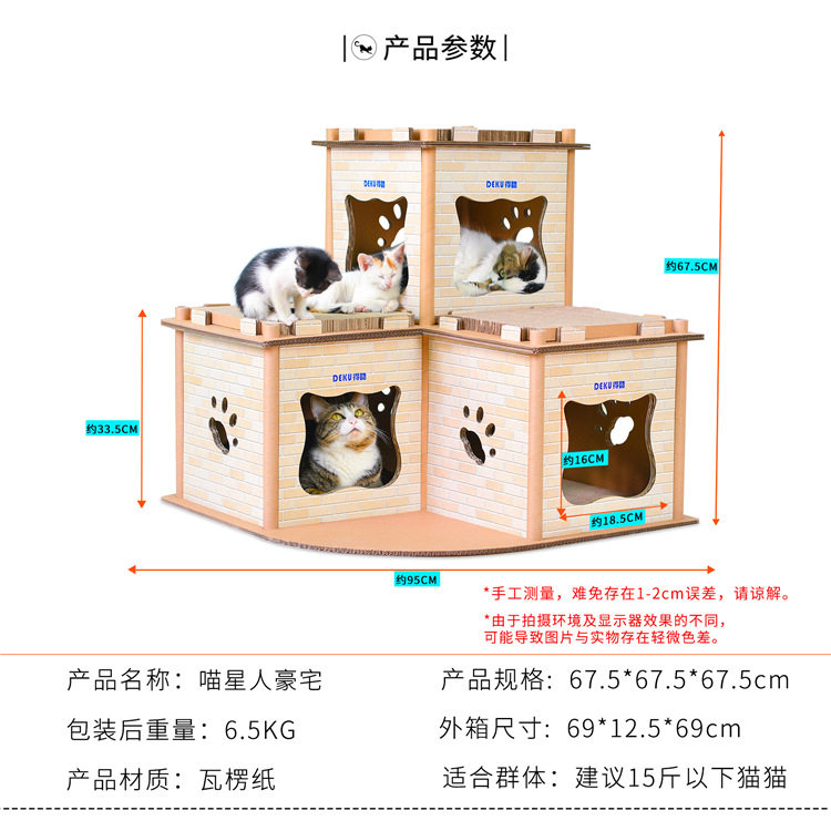 Cat House Corrugated Paper Kitty Mansion Cat Room Grinding Claw Toy Cat Grabbing Board Cat Climbing Cat Supplies