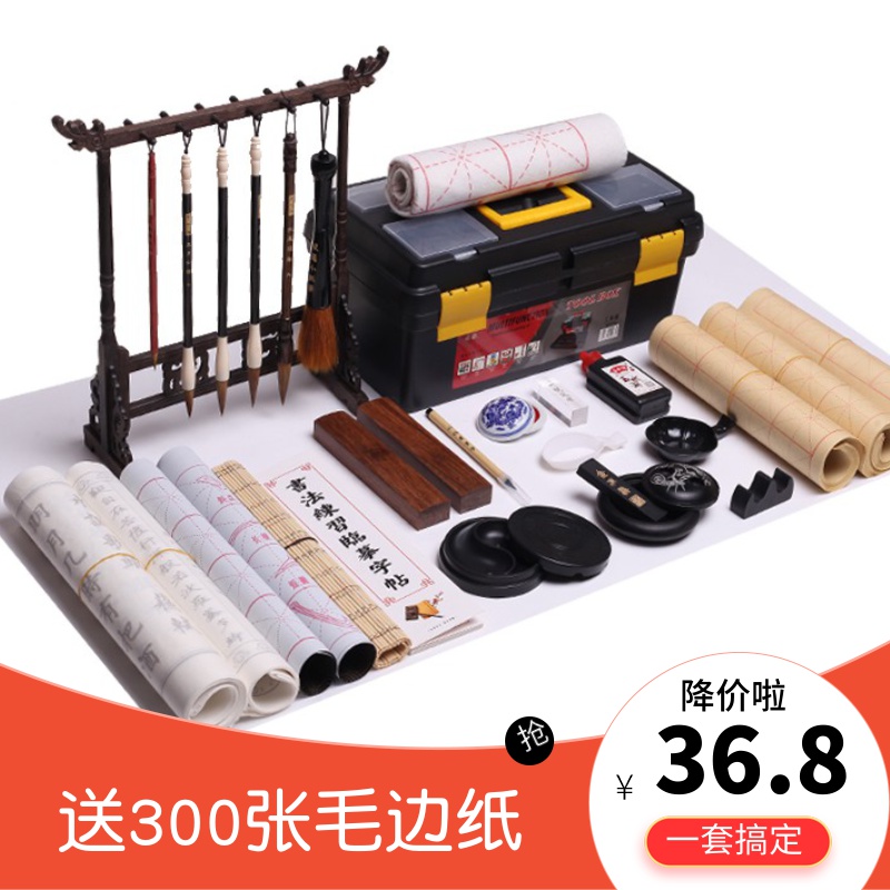 Brush set beginner learning studio four treasures calligraphy beginner introduction pen and ink paper ink brush character adult practice word professional grade primary school students soft pen and ink pen and ink supplies wolf full set of exercises