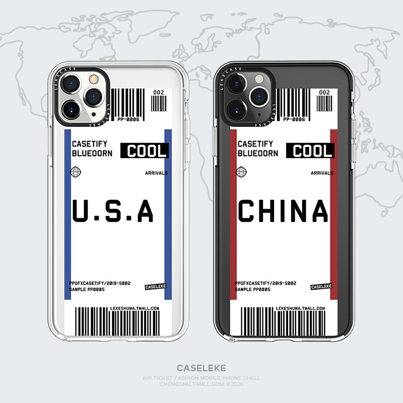 iphone12 mobile phone shell couples plane ticket customization suitable for Apple 11promax creative express order XSMAX tide brand signature custom 8plus color contrast Japanese and Korean ins wind small