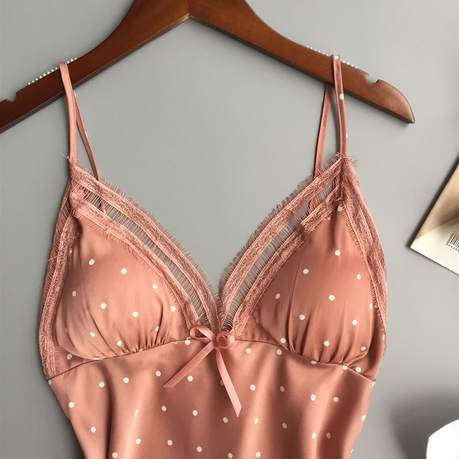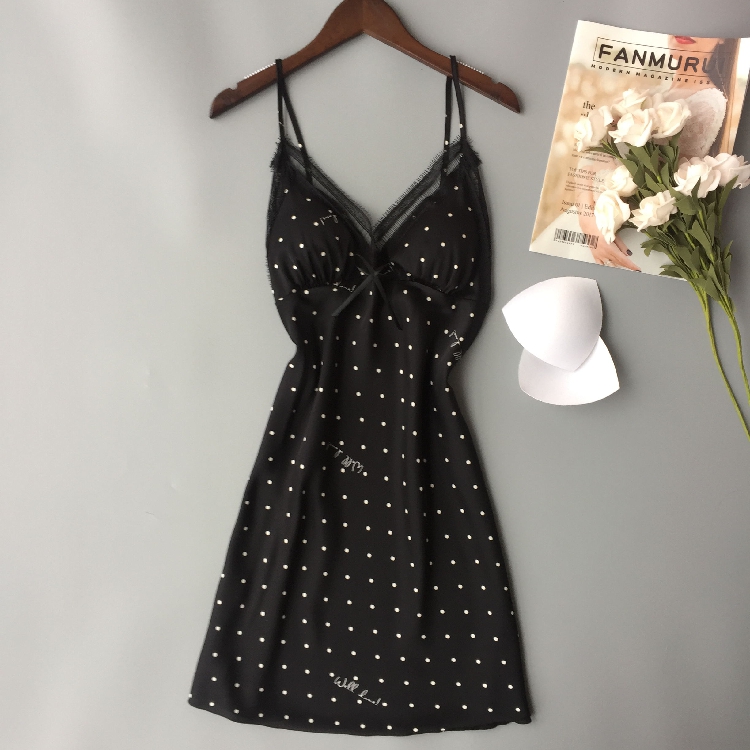 Sexy pajamas new summer girl polka dot lace ice silk sling casual cute student sling chest pad skirt