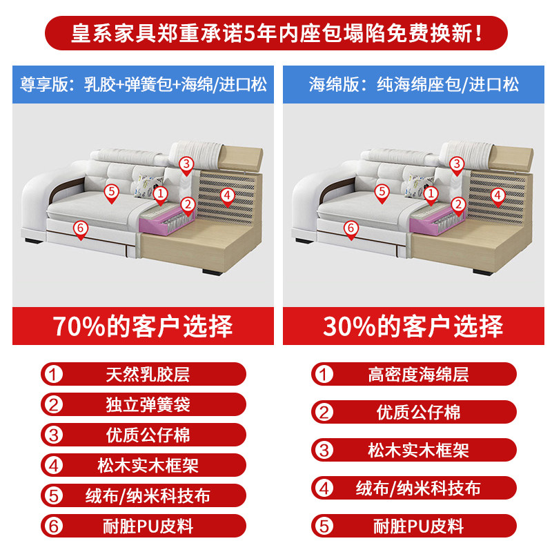 Standard version (high density sponge cushion) flannel luxury version (latex sponge cushion) flannel flagship version (sponge spring covered cushion) suede cloth revered version (Latex Spring Bag Sponge)