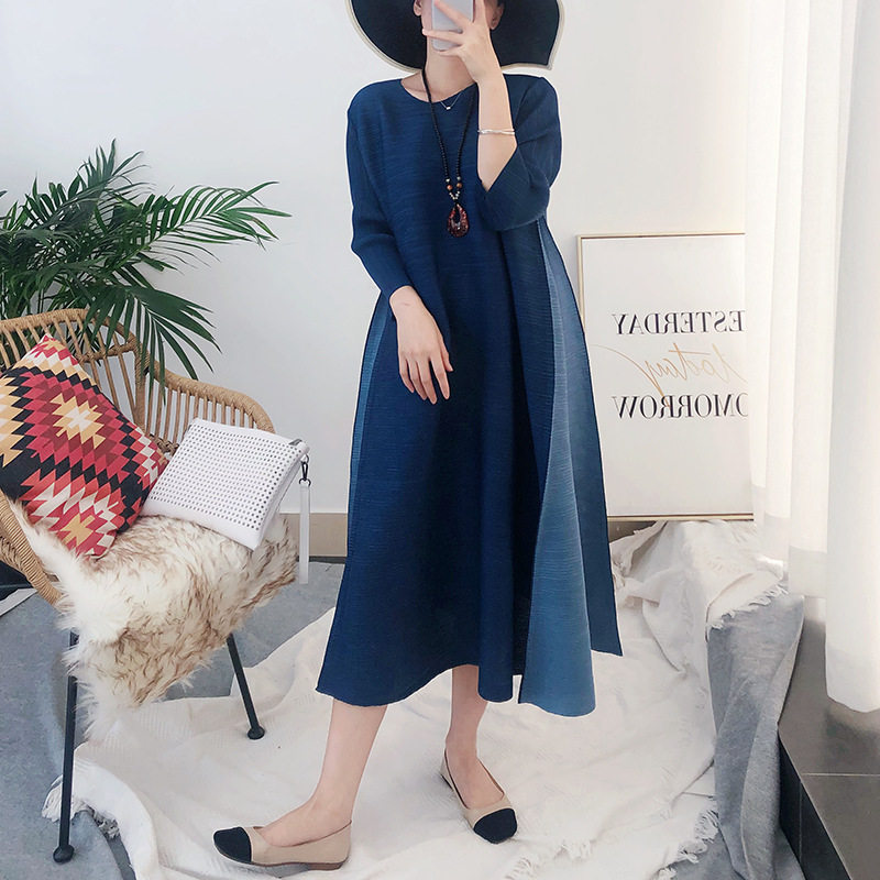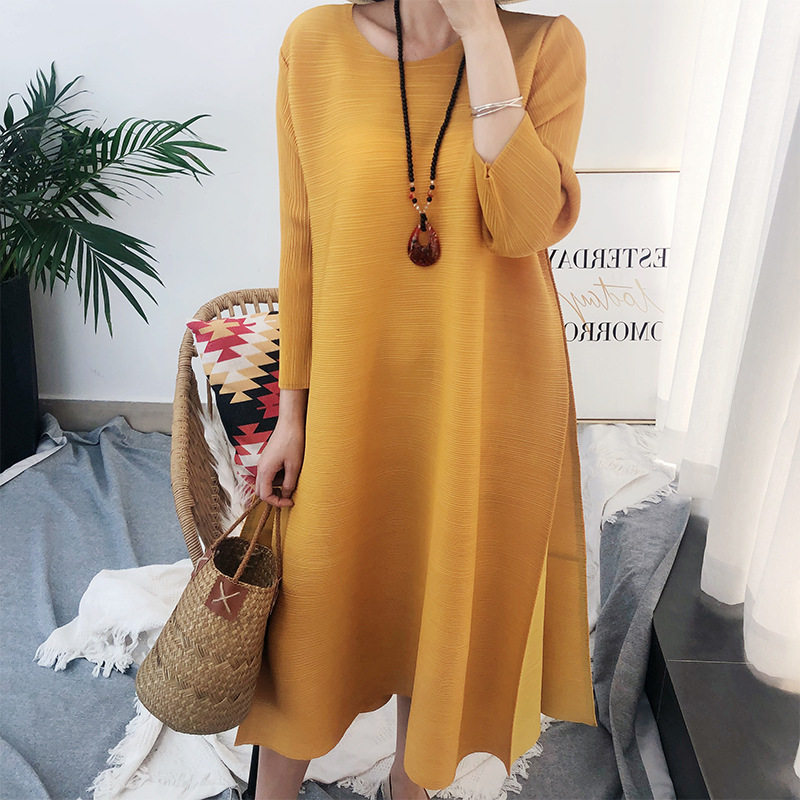 Three Homes Draped Ocean Dress Loose Spring Summer Fashion High-end Foreign Pie Fat Mm Big Size Mom Mid to Long Edition a word