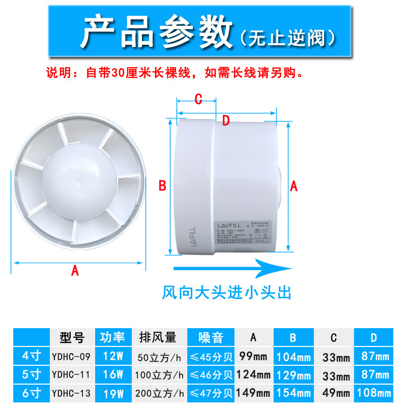 LAVFILL Laofang pipeline pressurized fan toilet bathroom exhaust fan exhaust fan 100 150 4 inches 6 inches
