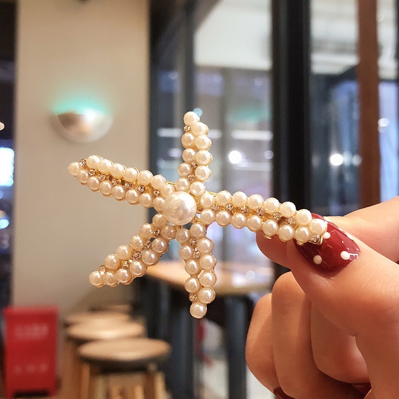 Niche hairpin net red hairpin vibrato with the same pearl starfish side clip girl simple Mori Korean ins side