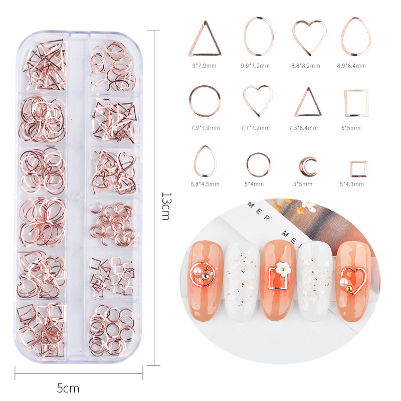 Mechia Ornaments New Rivets Hollowed-out Metal Rings Nail Decorations Rose Gold Venus Moon Rivets Metal Frame Boxed