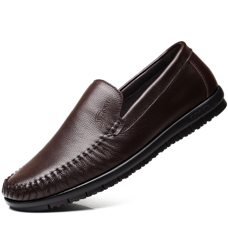 Yercon Men's Shoes Genuine Leather Casual Soft Bottom Legue-bean Shoes Head Layer Bull Leather A foot pedal Inron Breathable Father Leather Shoes Man