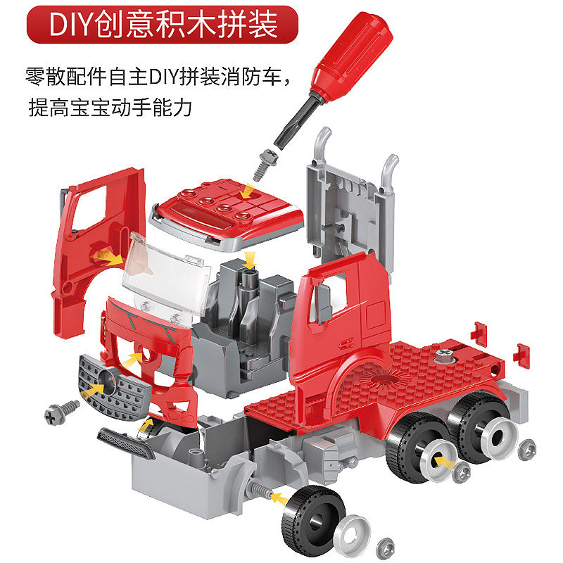 Children's disassembly engineering vehicle detachable assembly fire truck screw puzzle 4 boy toys 3-6 years old assembly