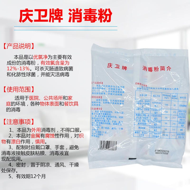 Qingwei brand disinfection powder hotel hotel hospital tableware clothes sterilization kindergarten toilet floor disinfection cleaner