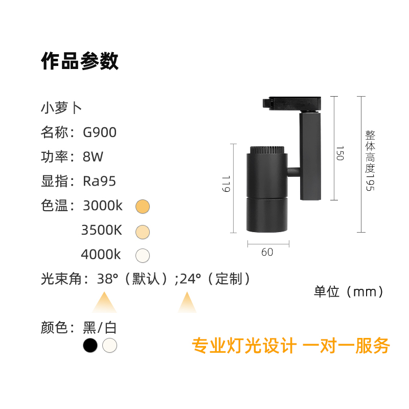 Track spotlight 8W 3000K white two-wire track spotlight 8W 3500K white two-wire track spotlight 8W 4000K white two-wire