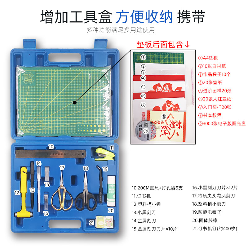 Cut paper tool set scissors engraving knife handmade material package Chinoiserie beginner engraving paper storage toolbox
