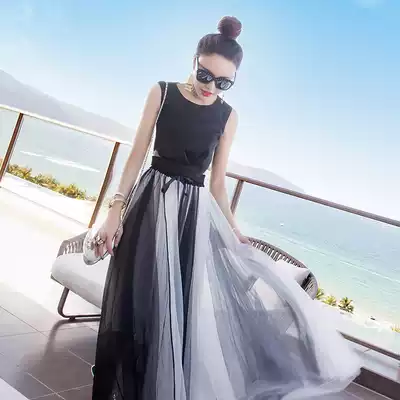 Very fairy mesh skirt women's medium long version of spring and summer 2021 new high-waisted pleated skirt a-shaped Tuffy skirt tide