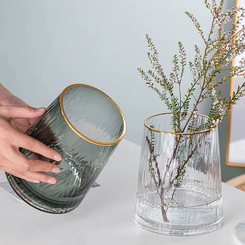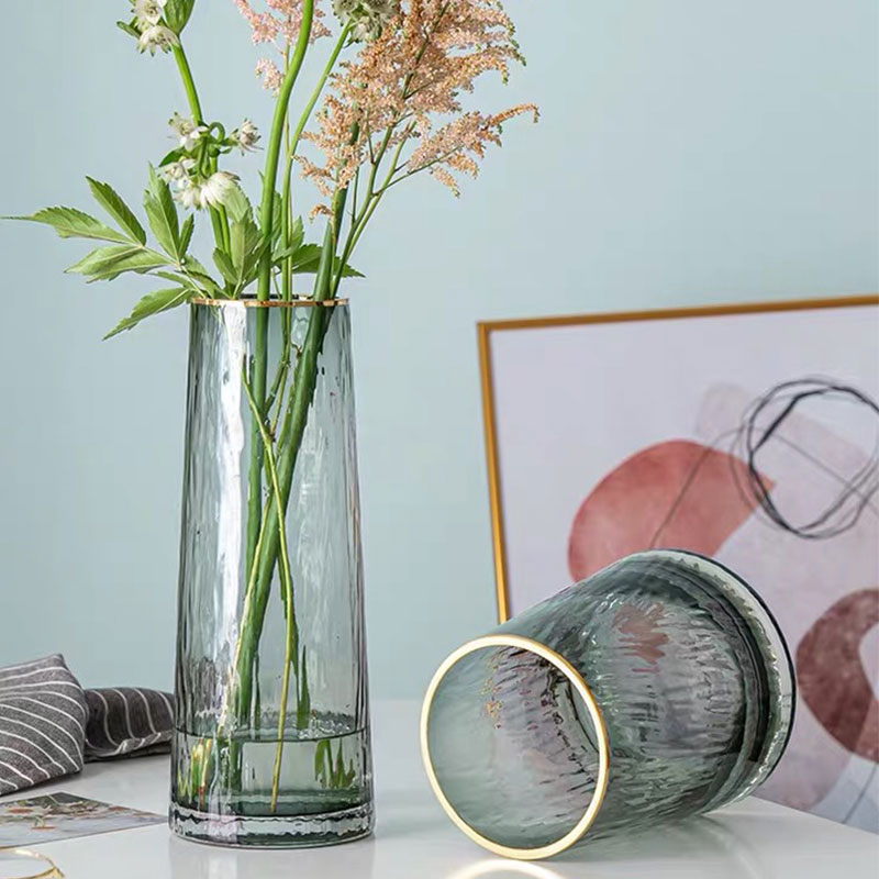 Nordic light luxury glass vase transparent living room flower arrangement Hydroponic bamboo flower bottle Rose lily bottle ornaments