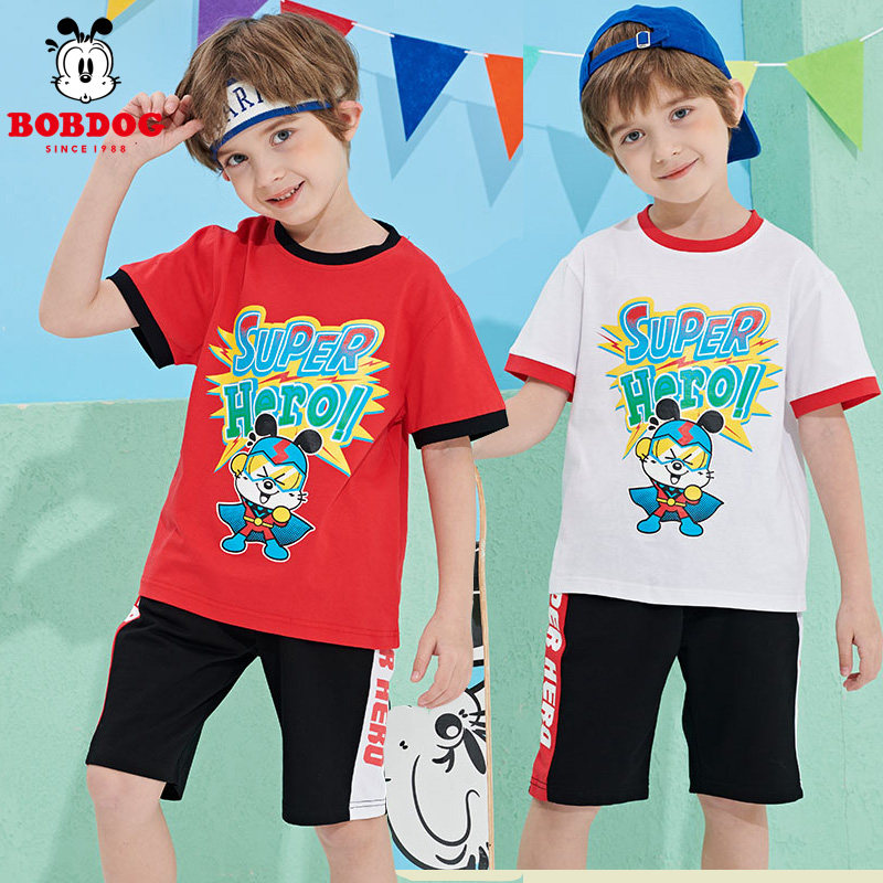 Babudou children's clothing boy short-sleeved suit 2022 summer new children's cartoon cotton thin section Western style Korean version of the tide