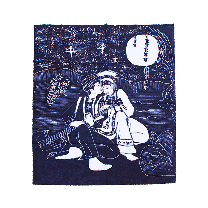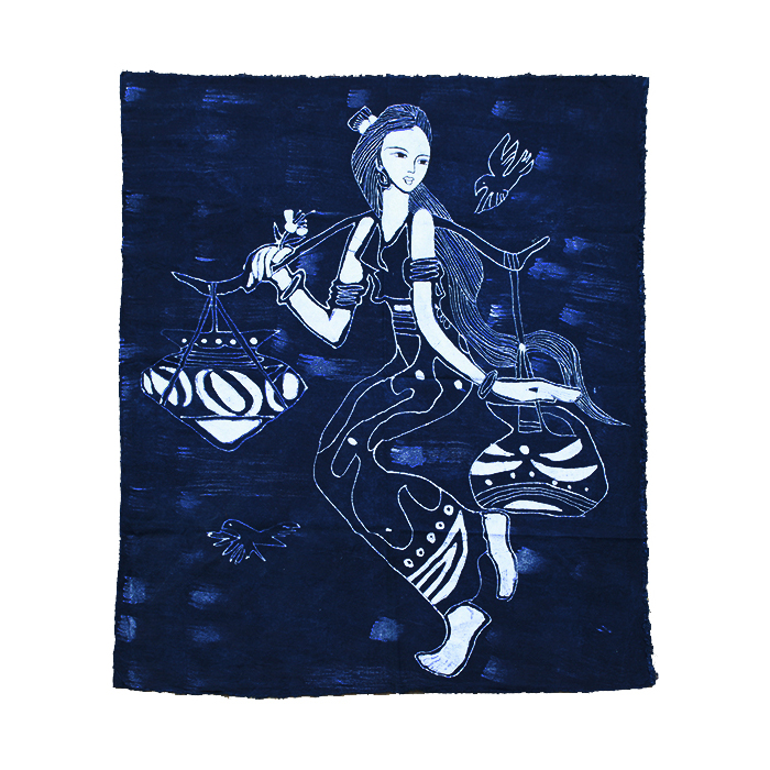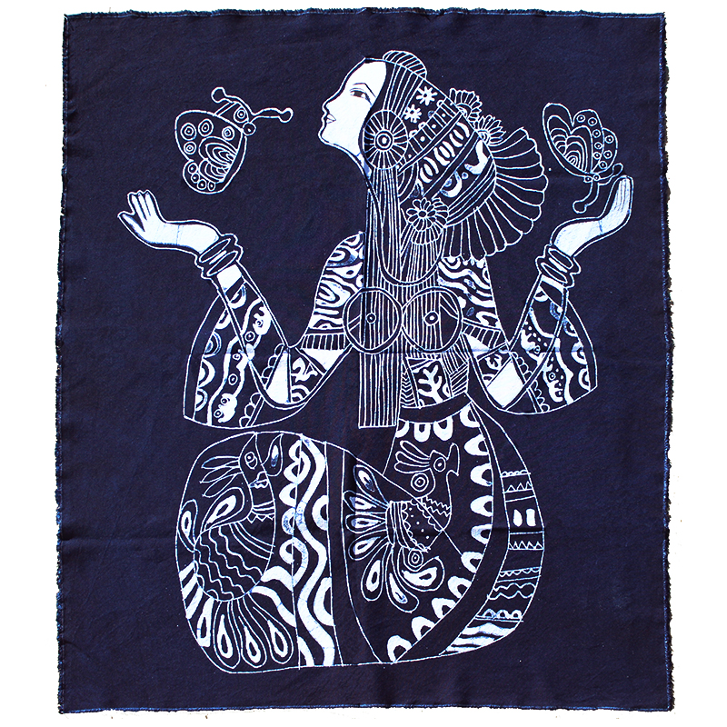 Yunnan tribe handmade batik decorative painting Ethnic characteristics Wall-hanging inn home bed and breakfast fabric figure blue and white