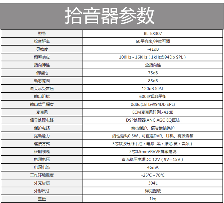 Explosion-proof surveillance camera high-definition audio collector low-noise probe 304 stainless steel outdoor waterproof pickup
