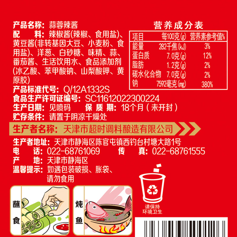 Tianjin garlic hot sauce Commercial kitchen Garlic hot sauce 450g * 3 mixed noodles barbecue restaurant barbecue pancake fruit sauce