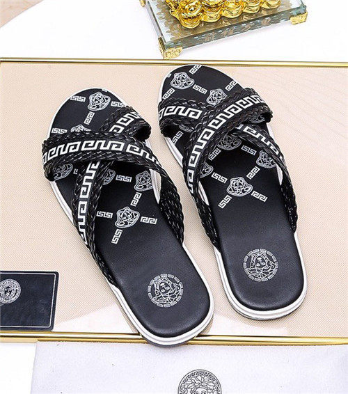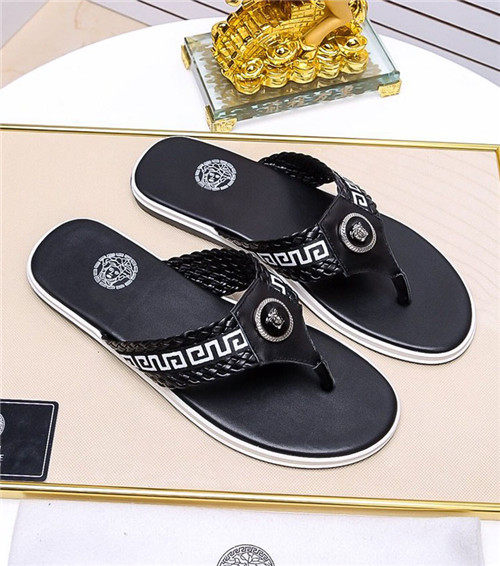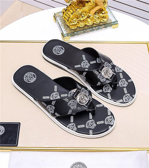 2020 summer new leather flip flops printing non-slip slippers men's Medusa fashion men's slippers beach shoes tide