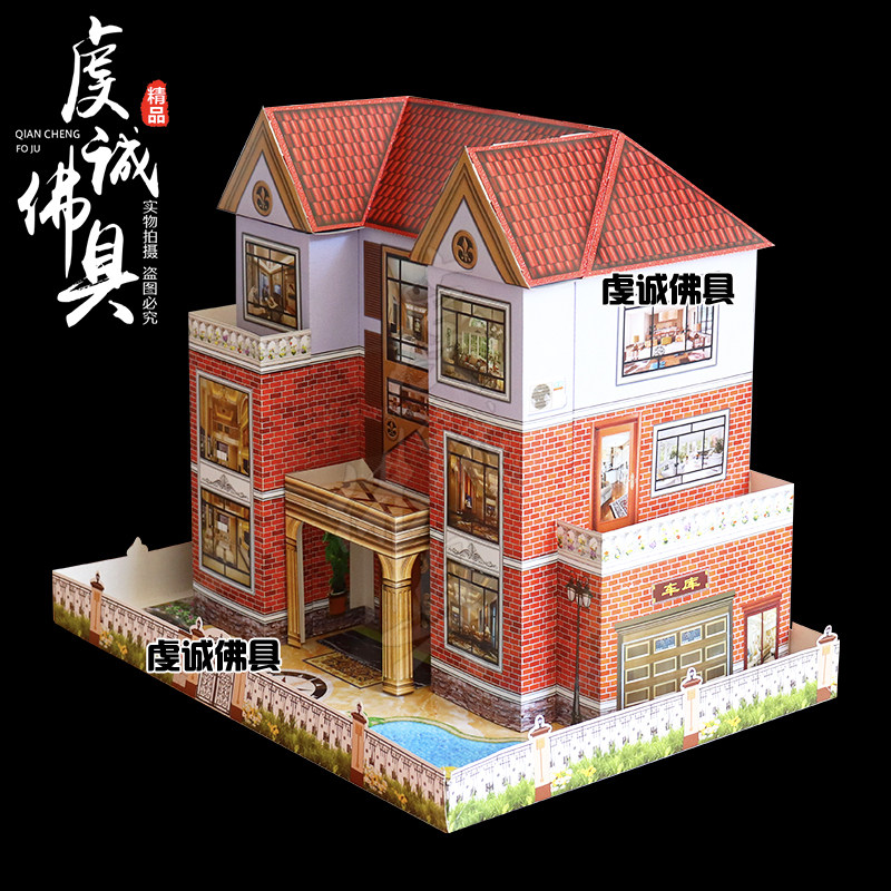 Sacrificial Supplies Big Number Paper House Folded Paper Villa July Semi-priesthood Tomb Sweeping Tomb Complete of Funeral Burial on Five Seven Upper Graves-Taobao
