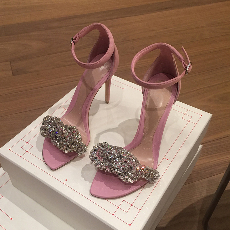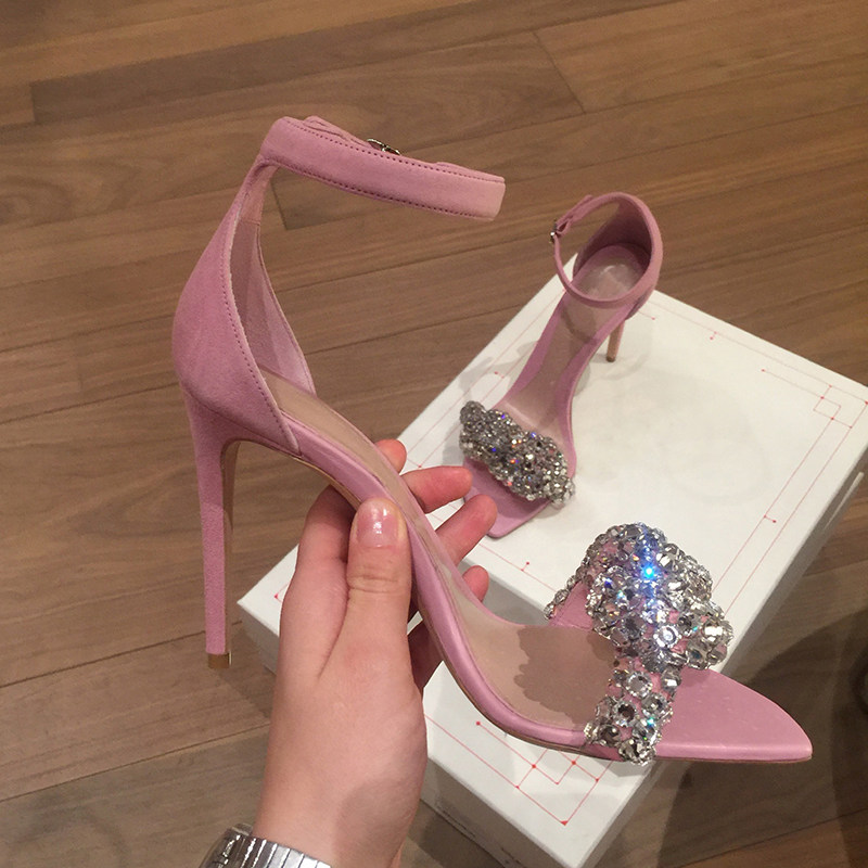 Non-collision niche blingbling irregular square head rhinestone high-heeled sandals
