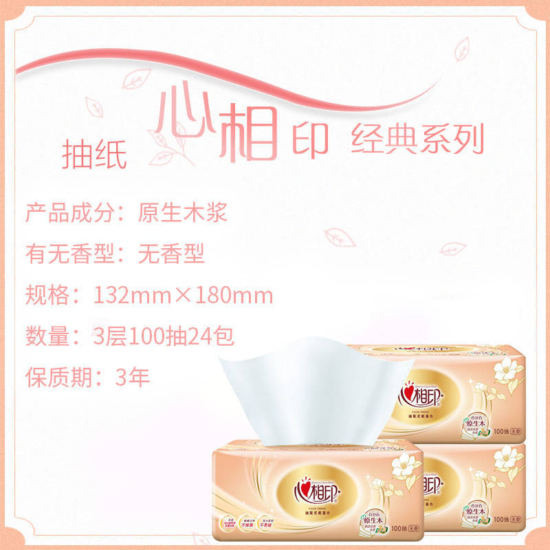 Xinjiang Tibet national heart-printed removable toilet paper 100 pumping 24 packs of household paper towels facial tissue gold affordable package