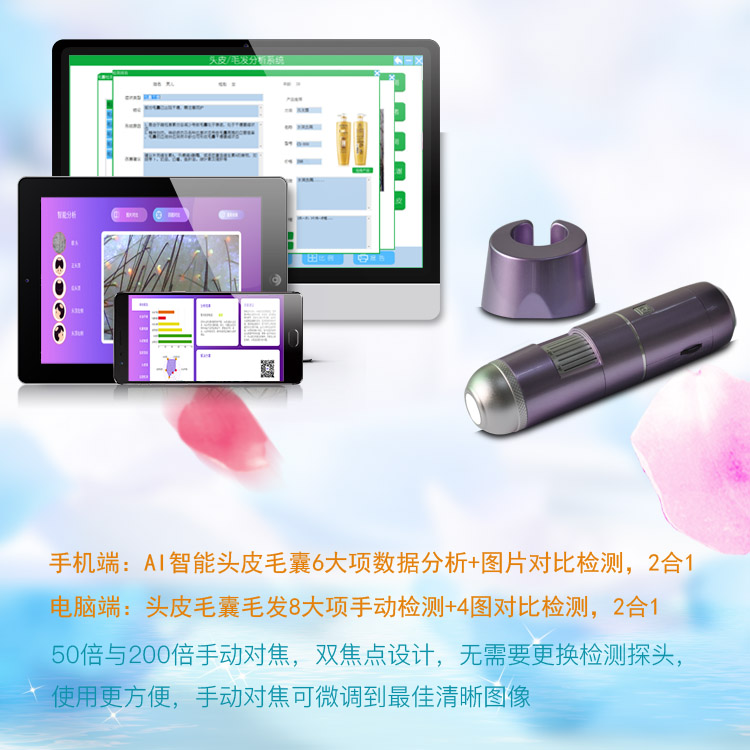 Wireless intelligent scalp hair follicle detector Hair test instrument Hair salon HD automatic analyzer