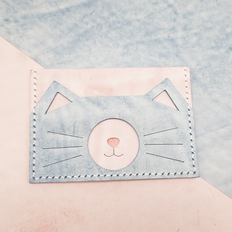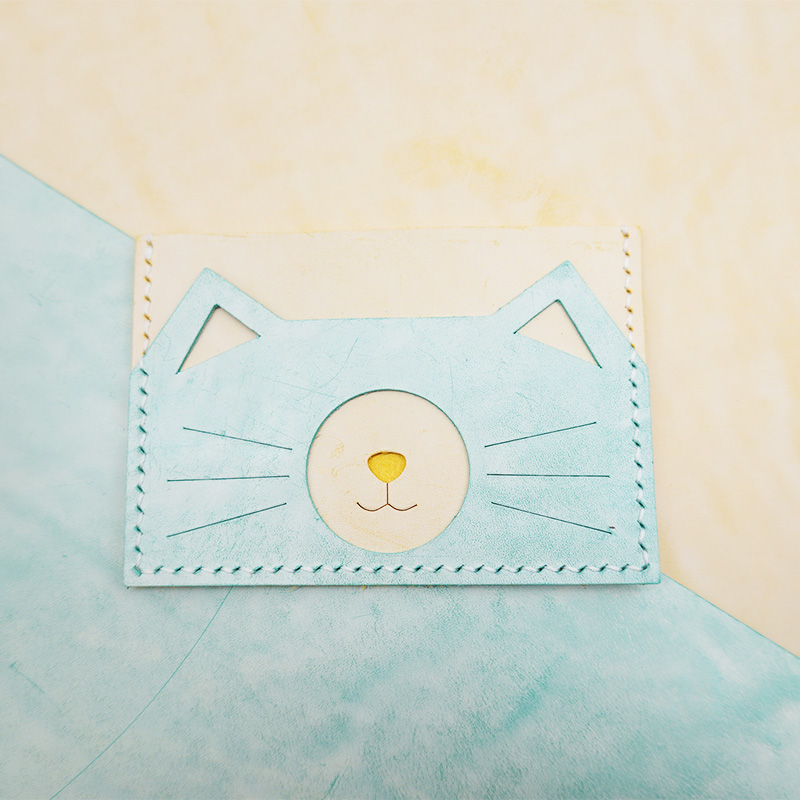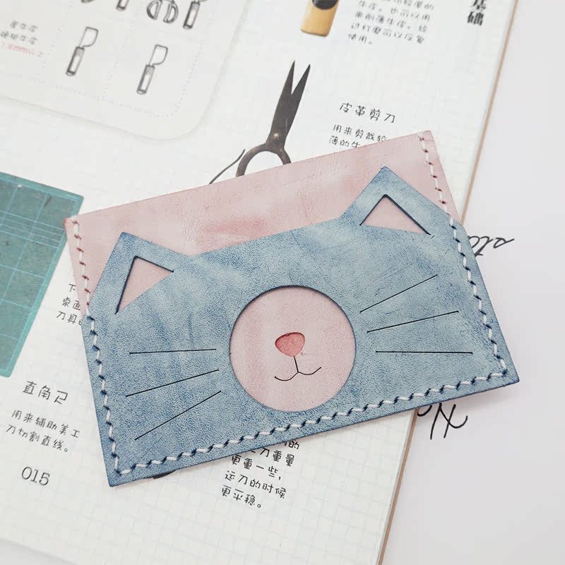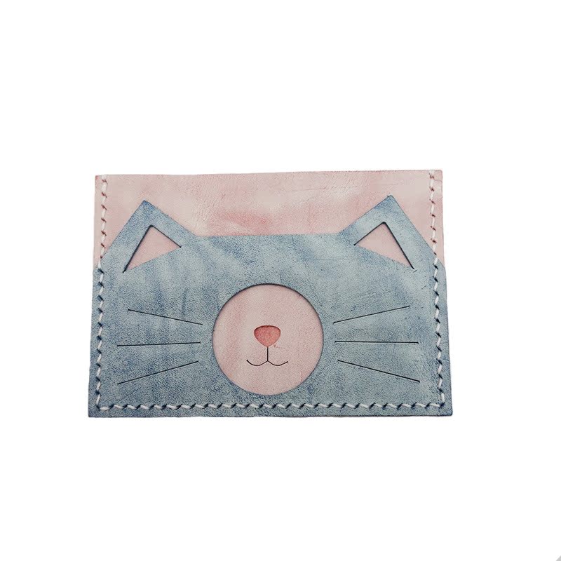 The cat owners are quick to make a card for the main son, Italian mist wax cow leather handmade diy material with decapitated semi-finished products