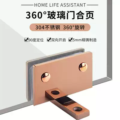 Solid titanium 360 degree rotating heaven and earth clip 304 shower room frameless glass door shaft hinge Upper and lower clip display cabinet hinge