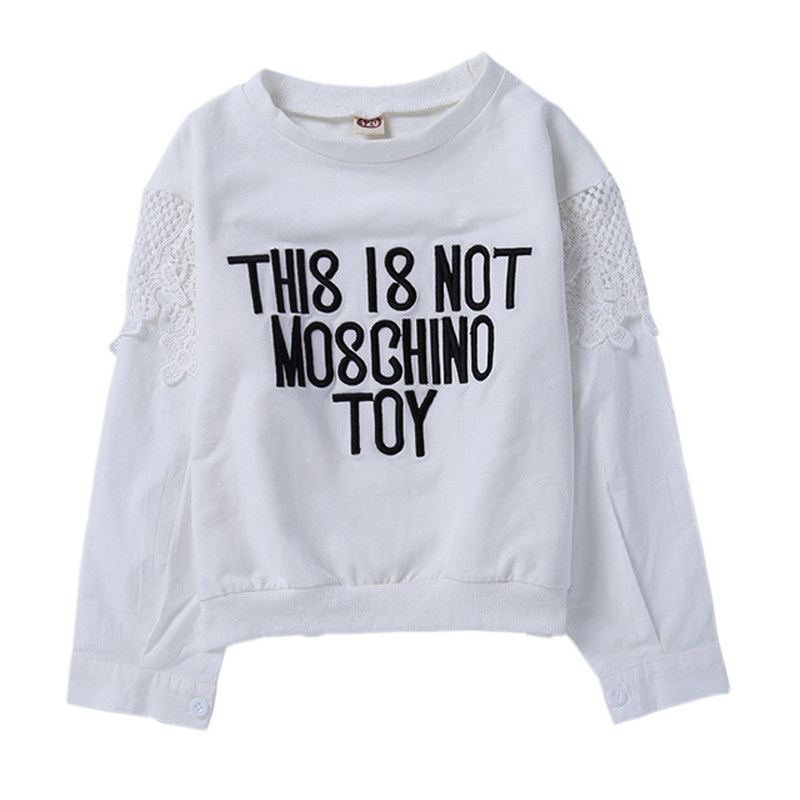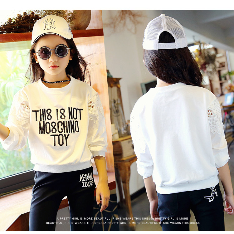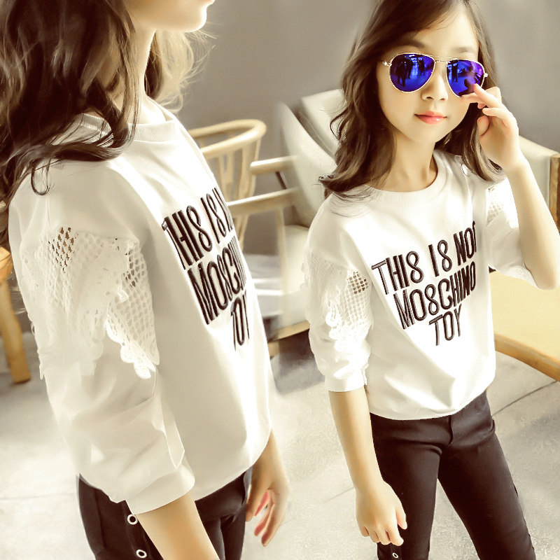 Han Edition Children's Clothing Girl Spring and Autumn New White Large Sleeve T-shirt hollow-sleeved Sweater