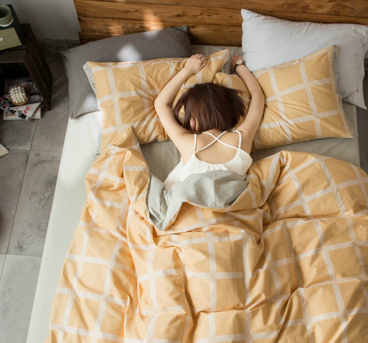 Literary Youth Simple cotton four - piece clad stripes are set to refreshing color matching double - bed 1 5m bed