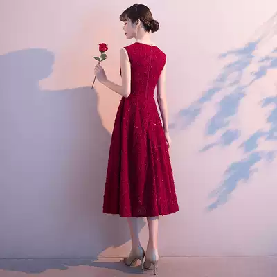 Toast dress Bride female wine red wedding engagement small evening dress skirt female banquet dress can usually be worn