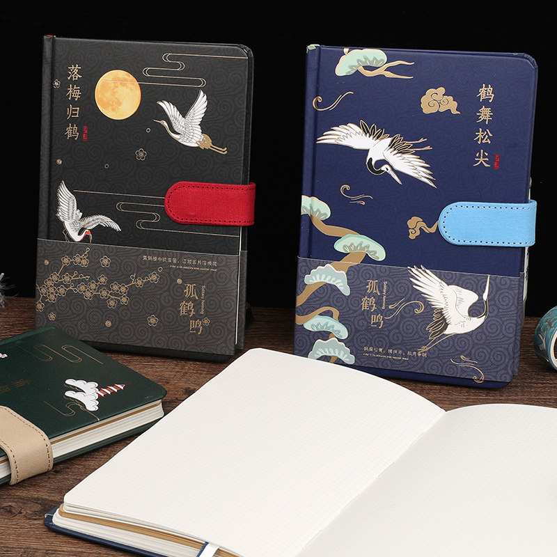 Fu Zhu buckle book (inner page horizontal line) + 3 deer crane pens