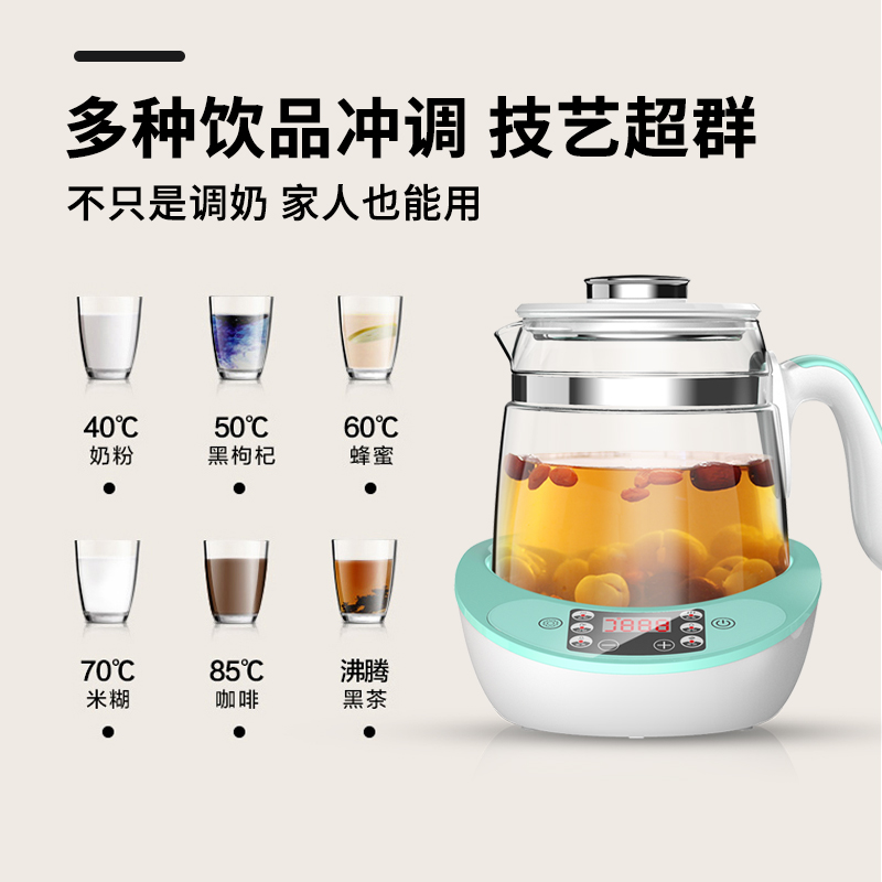 Berlega baby thermostatic creamer glass kettle intelligent warm milk steamed egg boiled flower tea fully automatic fly-milk powder