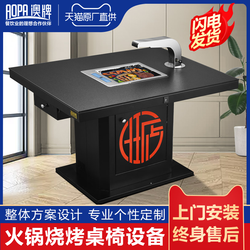 Australian brand Z67B commercial barbecue hot pot table tempered glass restaurant dining room barbecue table Korean grilled fish table