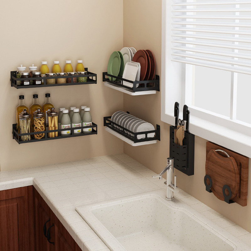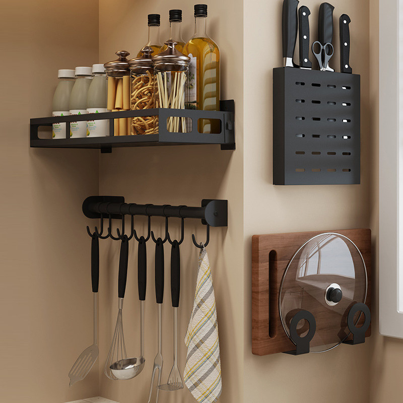 Stainless steel wall shelf Wall cutting board rack Chopsticks pot cover Kitchenware knife rack Non-perforated storage layer shelf