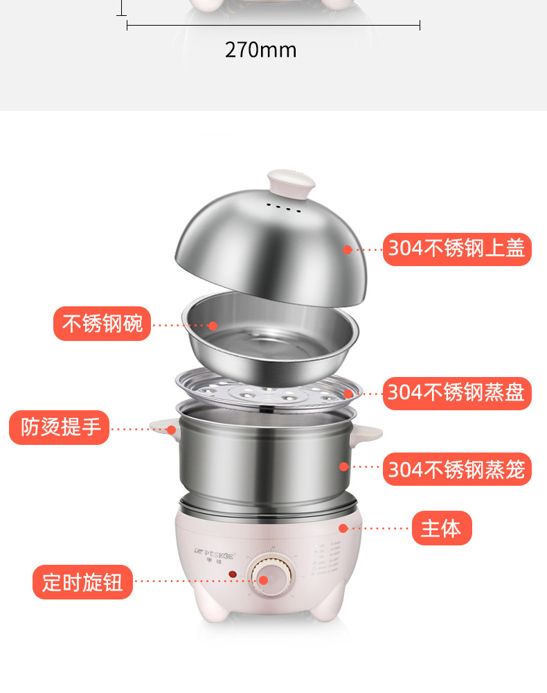 Hemisphere stainless steel boiled egg machine timed automatic power cut large capacity multifunction double layer energy steamed egg steamer for home