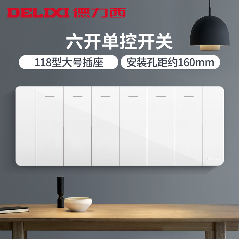 DeLixi 118 Type Switch Socket Panel Home Light Six Open Single Control 6 Open Power Panel Six Open Single Control