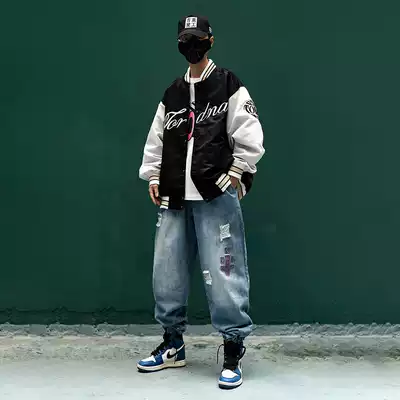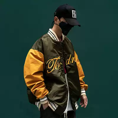 TORDNA autumn trendy men's stitching two-color jacket Couple loose casual baseball uniform student embroidery trend jacket