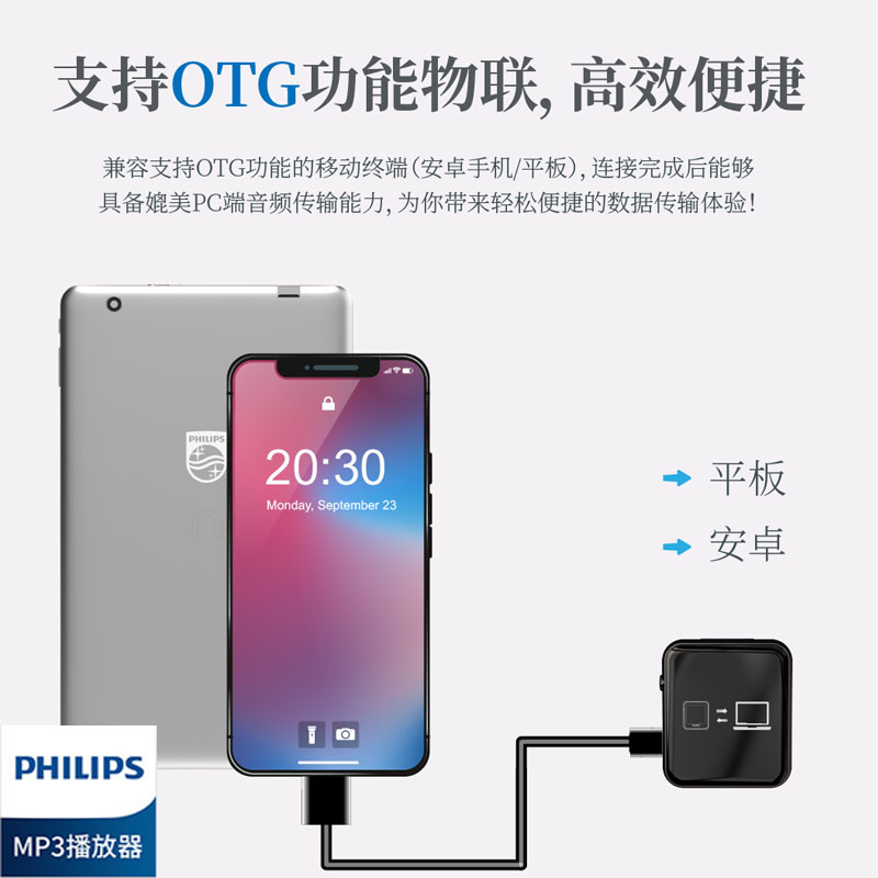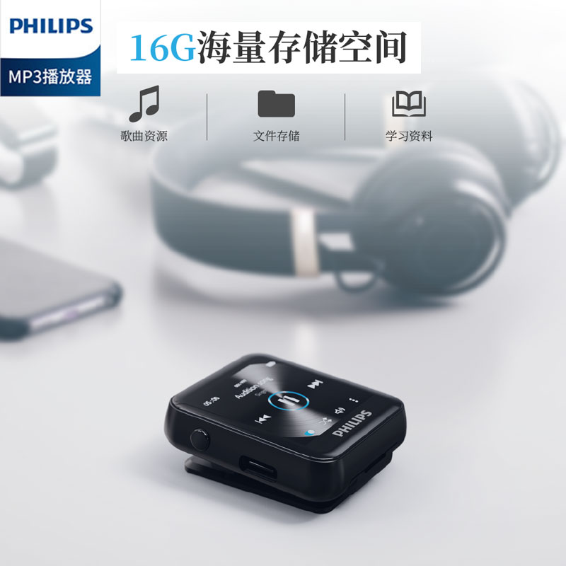 Philips Bluetooth MP3 player with body listening to student's version of back clamps English hearing training listening to deities only listening to songs special sports running small portable watches mini-SA6116