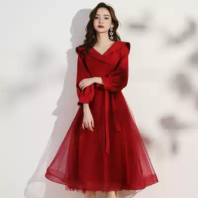 Toast dress bride wine red 2021 new style can usually be worn in summer small wedding dress skirt female back door