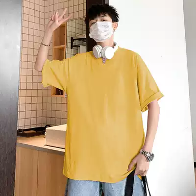 Xinjiang cotton short sleeve T-shirt men's port wind loose white base shirt Tide brand solid color cotton half sleeve T-shirt top clothes