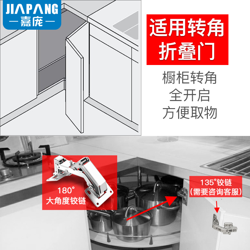 Jia huge angle free drilling hinge hinge whole cabinet wardrobe free slot free punch door hinge folding hardware hinge