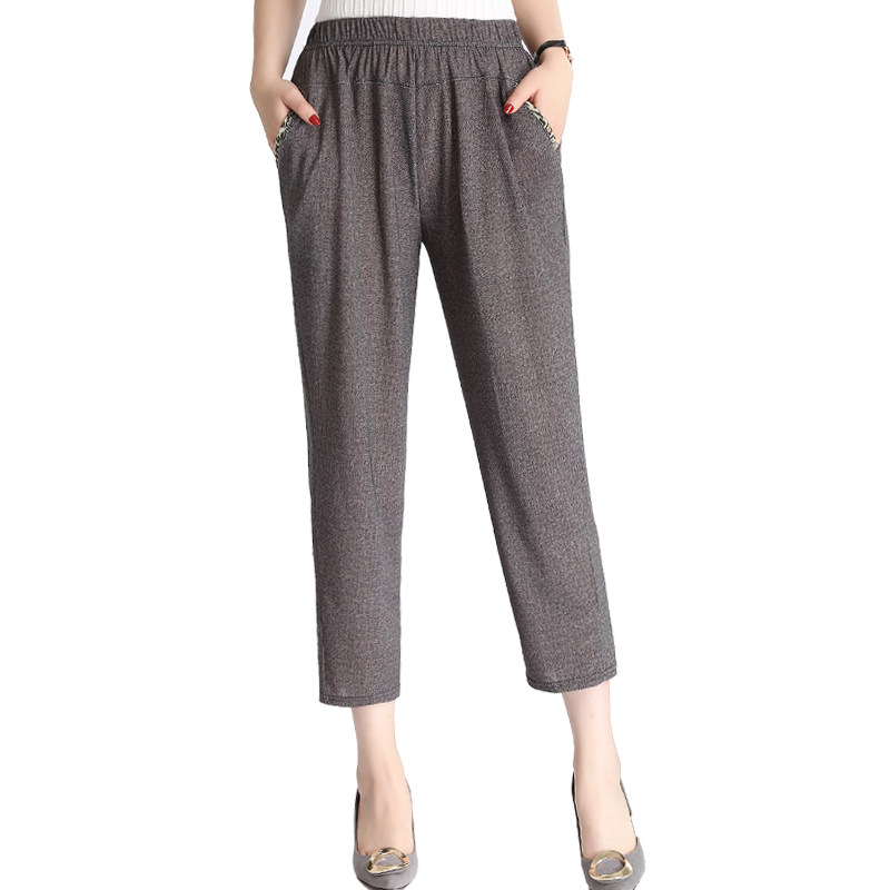 Medium Seniors Spring Summer Thin style 90% pants Mom wear tightness waist 89 Pants Middle-aged Woman High Waist Casual Pants