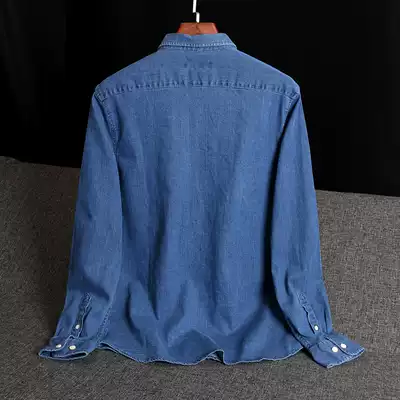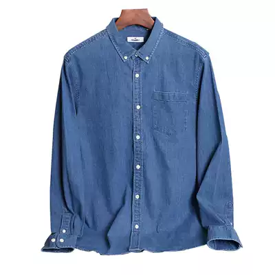 Denim shirt foreign trade men's spring new lapel denim shirt pure cotton washed long-sleeved shirt shirt men
