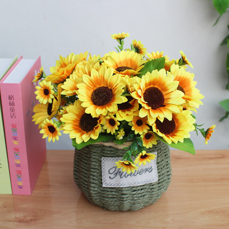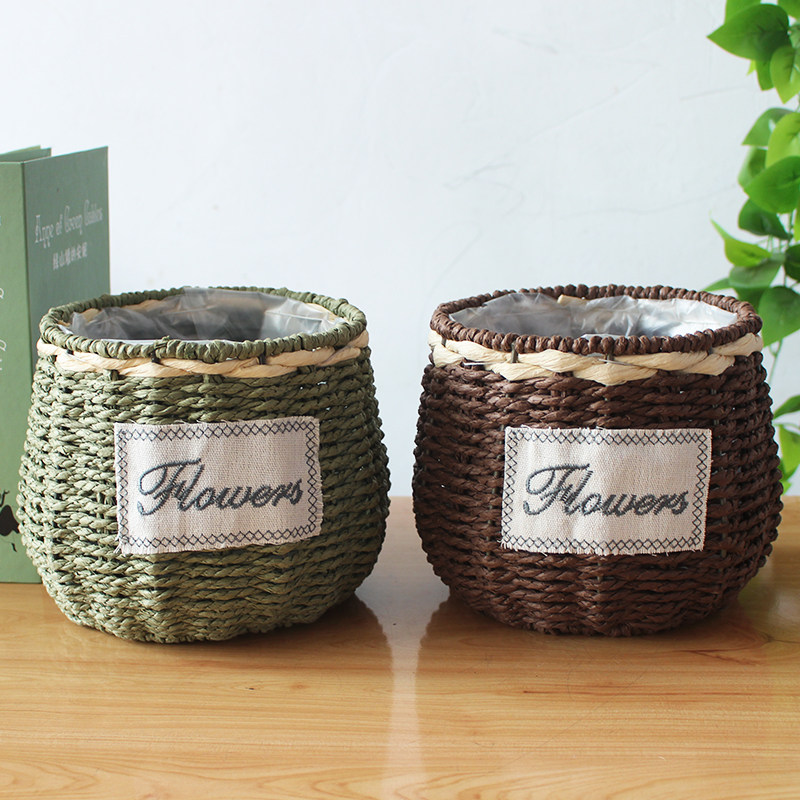 Creative flower basket Rattan flower pot Hand woven basket decoration Living room flower arrangement Fake flower dry flower simulation flower decoration